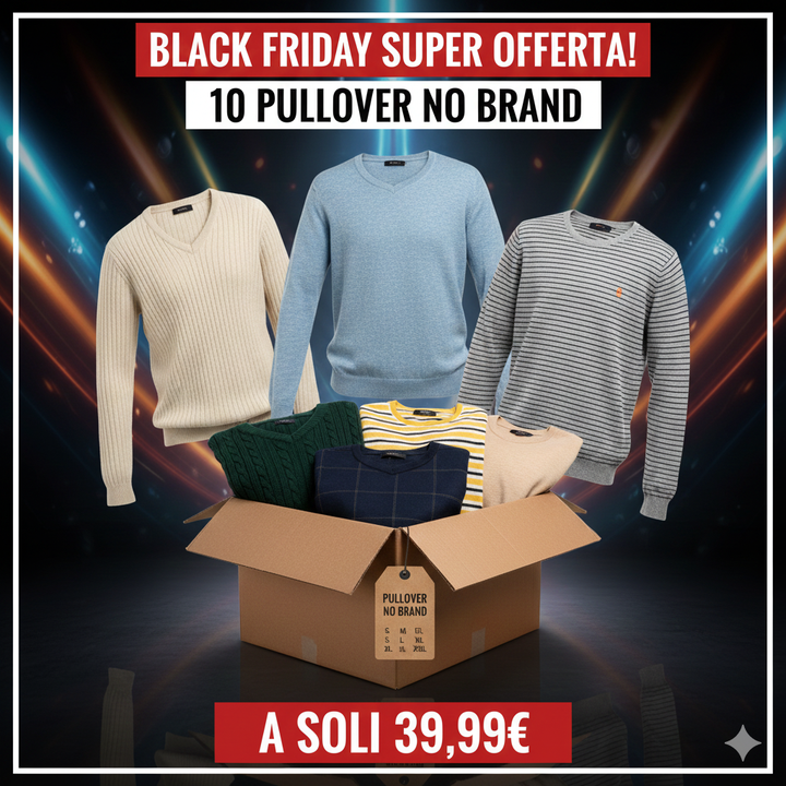 🎁 10 PULLOVER LEGGERI UOMO - NO BRAND 🎁 Rinnova il tuo stile con la nostra imperdibile offerta Black Friday! Ricevi 10 pullover leggeri da uomo, no brand, in modelli e...