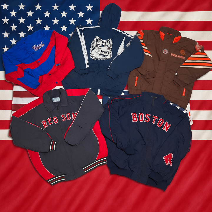 Box da 5 giacche vintage sportive assortite (NFL ā MLB ā College).